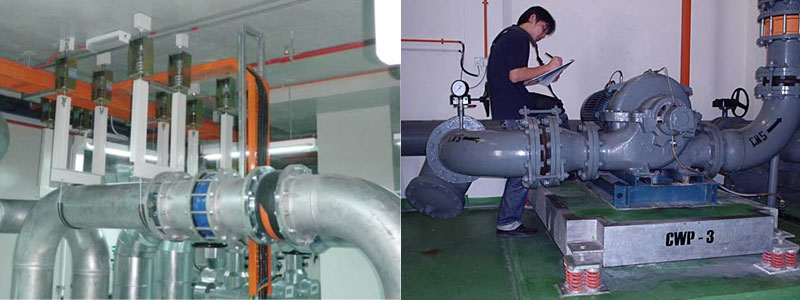 motores, turbinas, ejes, tuberías, ventiladores, engranes, bombas,
